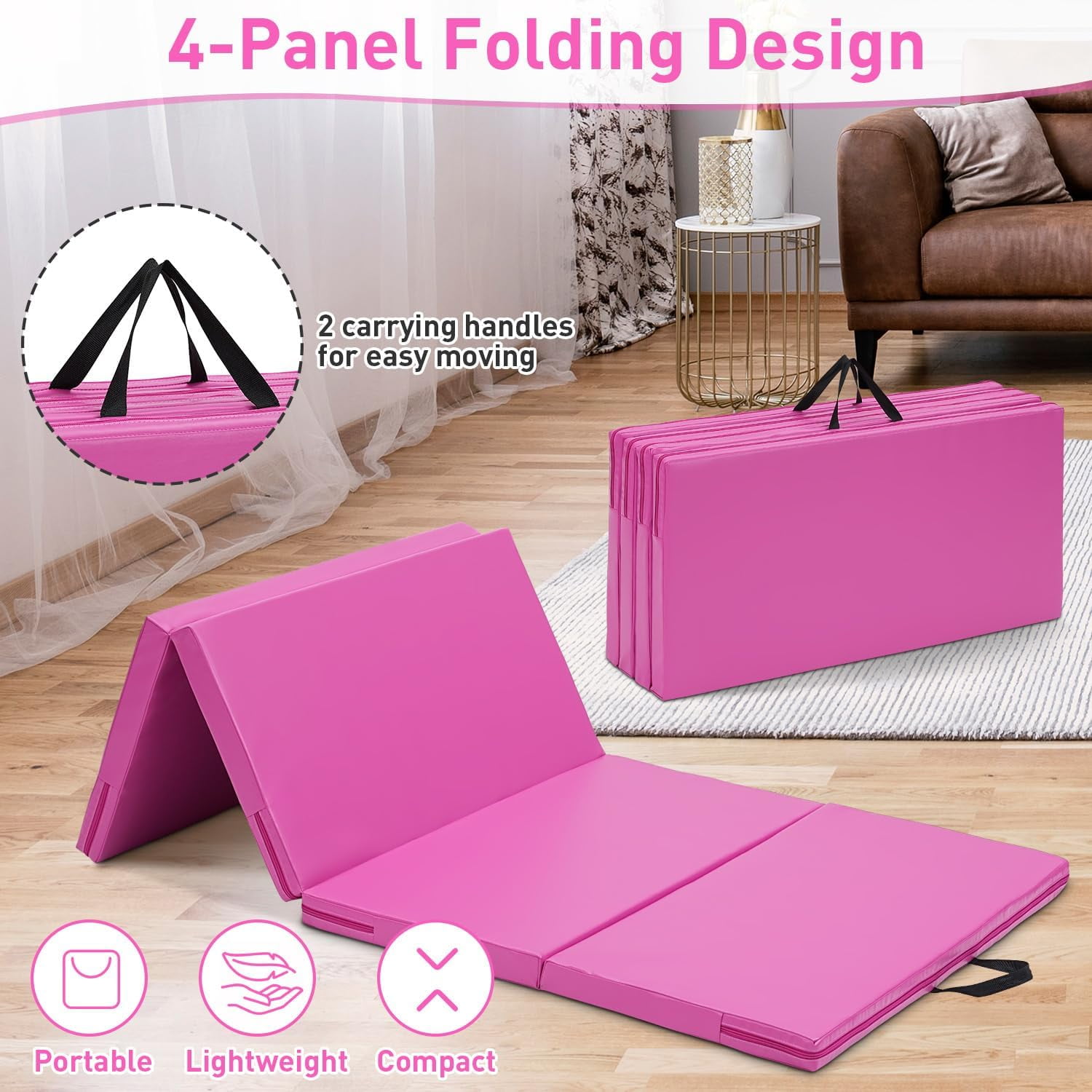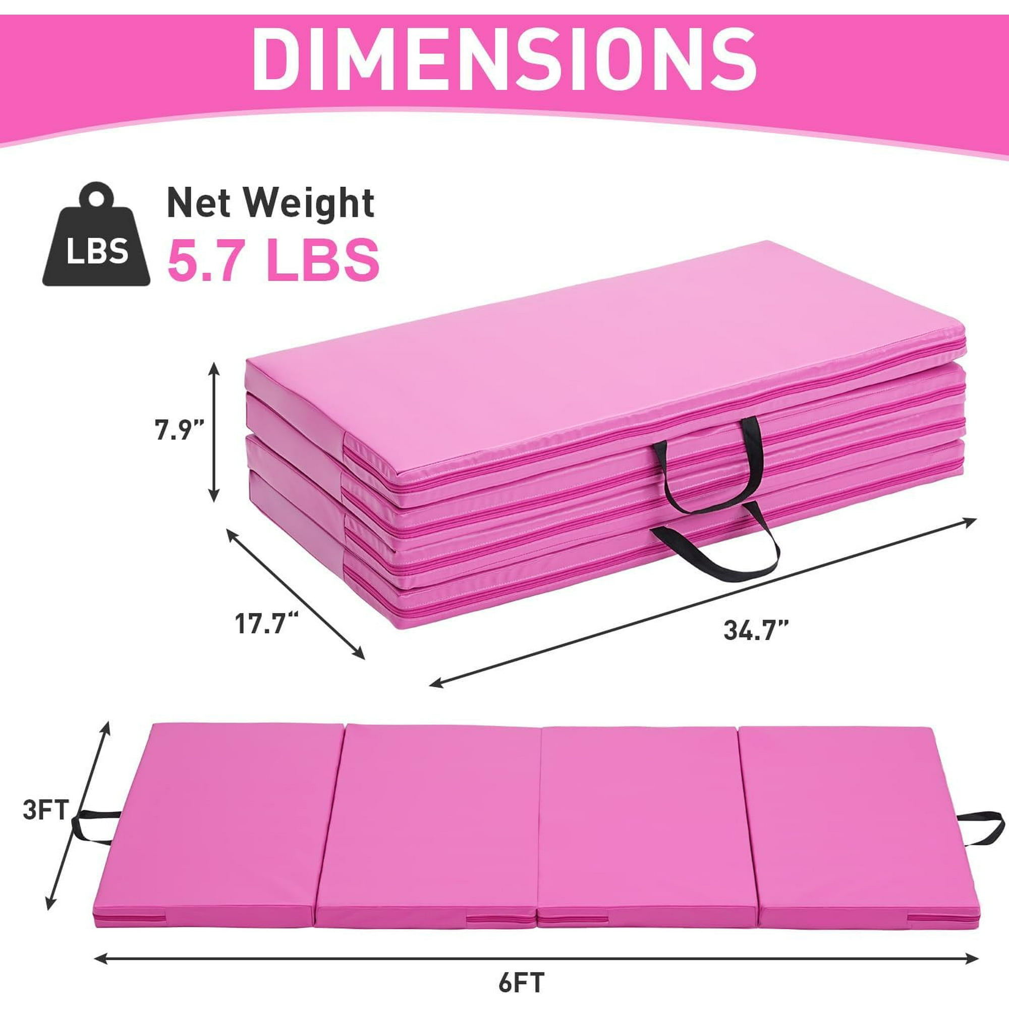 Gymnastics Mat, 3’x6’x2”/ 4’x8’x2” Thick Folding Kids’ Gymnastic Tumbling Mat with Carrying Handles for Home Gym Exercise & Play